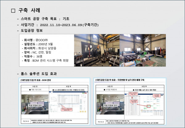 2차 사업을 통해 가공실적 실시간 추적 관리 시스템 도입 예정.